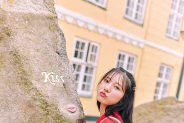日向坂46河田陽菜、赤ワンピ姿で“キスマーク”モニュメントと撮影 2nd写真集先行カット第8弾公開【テイクオフ】