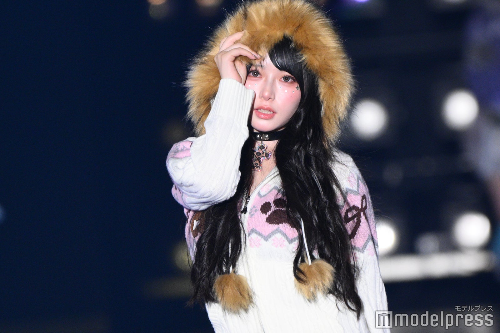 美人インフルエンサーMumeixxx、ファーパーカーで平成っぽ ミニ丈から美脚スラリ【関コレ2025A/W】