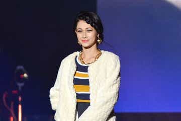 藤井リナ、魅惑のミニドレスで美脚あらわに 投げキッスに観客うっとり