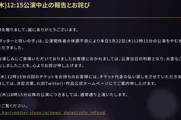 舞台「ハリポタ」昼公演が急遽中止「公演関係者の体調不良により」