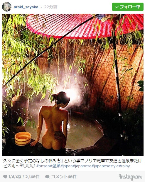 荒木さやか“バックヌード”大胆披露 SEXY入浴ショットに「神ボディ」「永遠の憧れ」