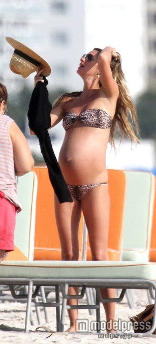 来月出産予定!? スーパーモデルのジゼル・ブンチェン、ビキニで大きなお腹を披露