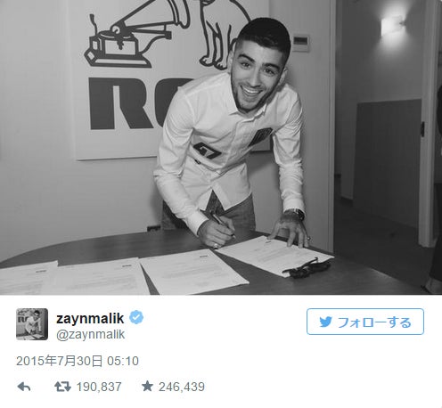 1D脱退のゼイン、レコード会社と契約を発表「本当の自分を見せる」