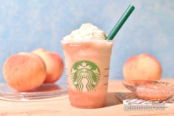 スタバ「ピーチ オン ザ ビーチ フラペチーノ」桃のみずみずしさ&果肉感弾ける