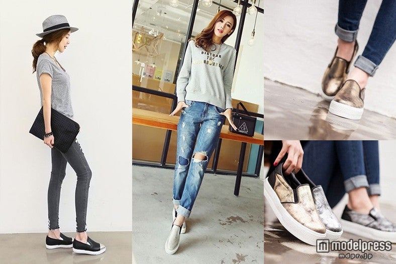 大人カジュアル派の春コーデにアクセントを!“メタリックスリッポン”が使える