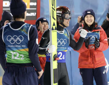 小林陵侑は連覇ならず8位 メダル逃す 銅メダル獲得の後輩、二階堂に笑顔で駆け寄る