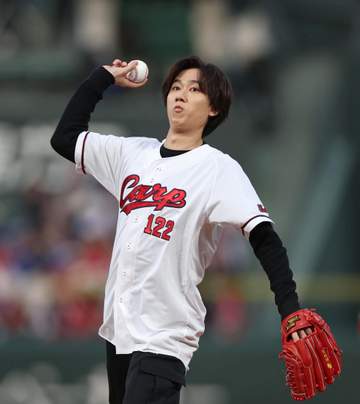 広島 Snow Manの阿部亮平が始球式に登場 見事なノーバウンド投球を披露「選手の皆さんへのリスペクトを忘れない気持ちで」 広島-中日の開幕戦に花を添える