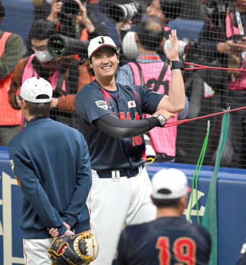 侍J・坂本「大谷“さん”としゃべれました」 近藤が仲介「『先輩だぞ』と言ってくれて」 練習前にガッチリ両手で握手