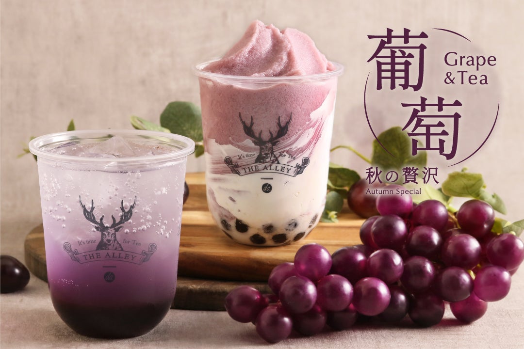 台湾発の本格派ティーストア「ジ アレイ(THE ALLEY)」では、秋の新作「葡萄のティーグルト」「葡萄のティーソーダ」を2024年9月2日(月)より提供する。