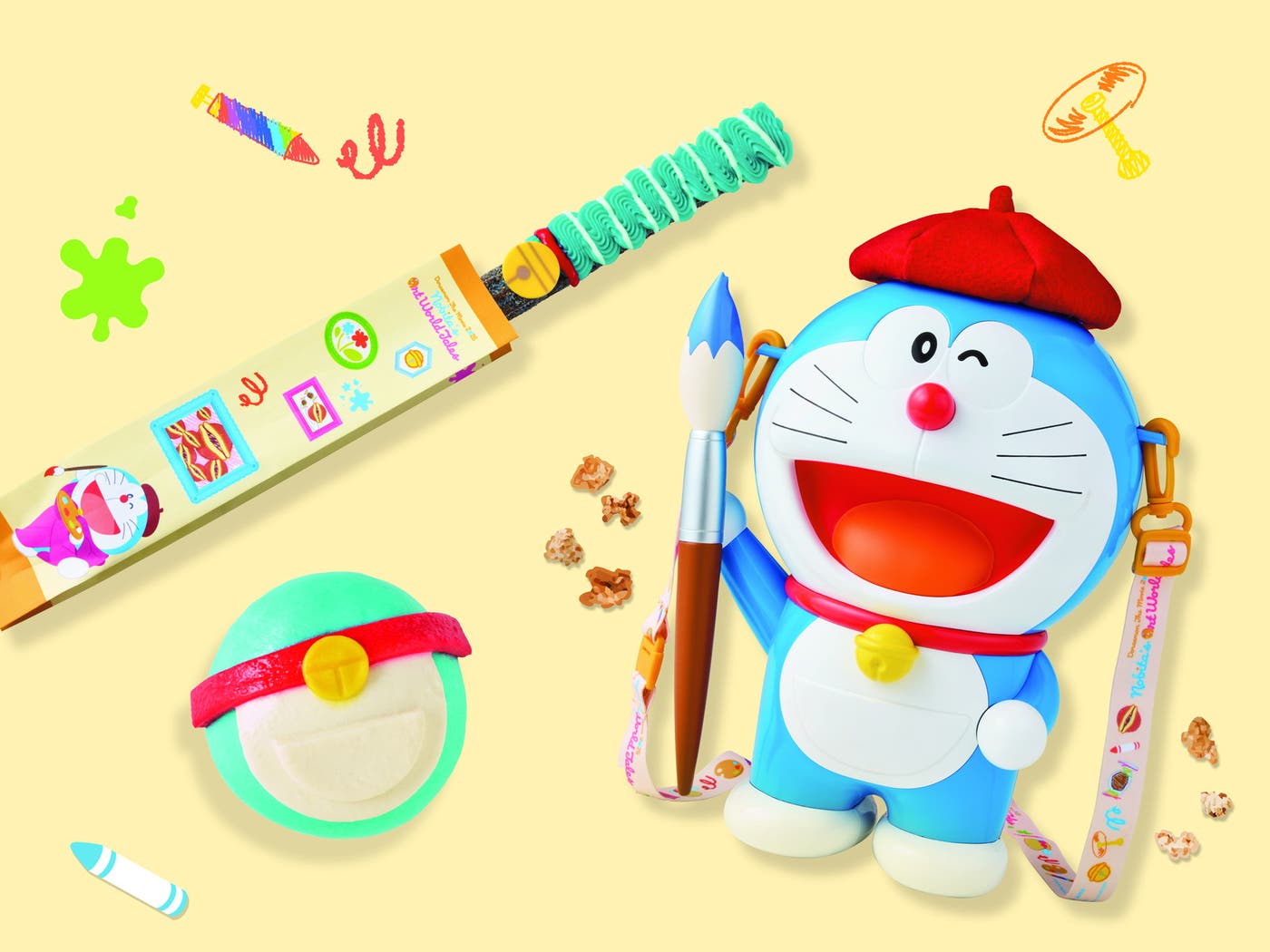 ユニバーサル・スタジオ・ジャパンでは、『映画ドラえもん のび太の絵世界物語』公開を記念したシアター形式のアトラクション『ドラえもん 4-D アート・アドベンチャー ~のび太の絵世界物語~』を、2025年2月14日(金)~8月17日(日)の約半年間限定で開催。アトラクションの世界観に没入できるオリジナルフードが2月13日(木)から、グッズが2月14日(金)より順次登場する。