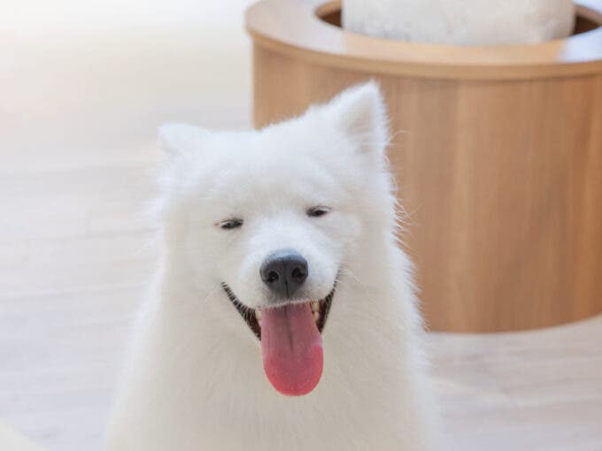 真っ白でふわふわの毛並みと、思わず笑顔になってしまう優しい表情のサモエドたちと触れ合えるドッグカフェ『サモエドカフェmoffu大阪心斎橋店』が、2025年10月にオープンしました。原宿店や竹下通り店は予約が取れないほどの