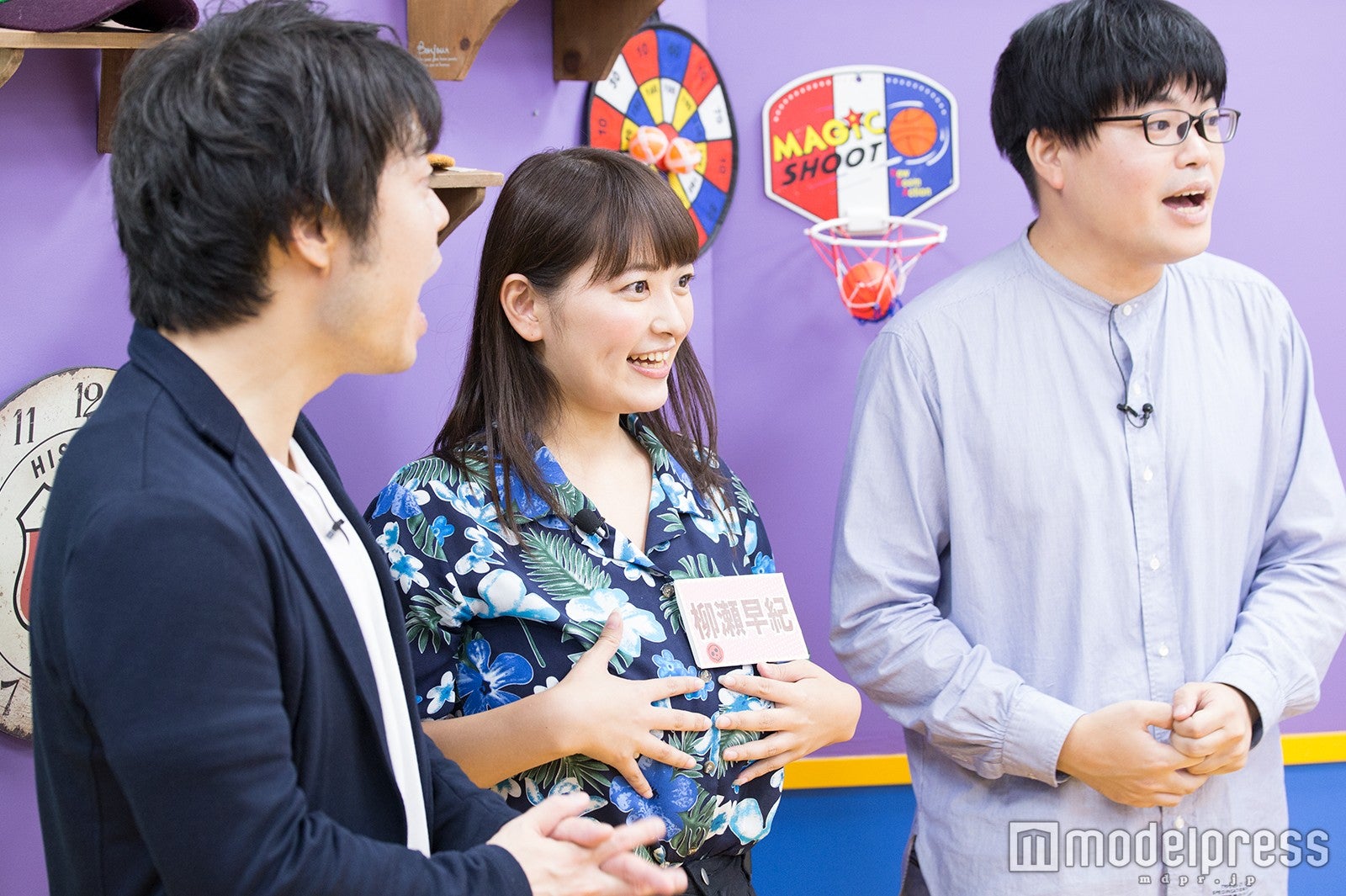 「モデルプレスナイト」は、ガールズゲストたちが芸能界で生き抜くための力を身につけるべく、様々な自分磨き企画に挑戦していく番組。人気よしもと芸人が、アシスタントの妹田佳奈子とともにMCを担当。今回はライスが進行を務め、ガールズゲストとして柳瀬のほか、あびる李帆、清水あいり、戸田れいが出演した。Iカップ・柳瀬早紀の迫力バストに興奮