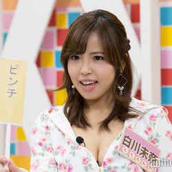 各コーナーでビリになってしまったガールズゲストには、毎回クビシールが貼られ、通算で5つたまると番組追放となってしまう同番組。この日は、これまで追放されていたメンバー、田森美咲、忍野さら、白川未奈、ゆきぽよが再登場し、番組復帰をかけて白熱バトルを繰り広げた。4人のうち、復活できるのは2人だけとあり、際どいセクシー対決にも全力でぶつかっていく女子たち。悩殺撮影会バトルでは、忍野がバストを強調したニット姿で男性陣を翻弄し、田森はビッグTシャツ1枚で見えるか見えないかのギリギリのラインを攻めた。