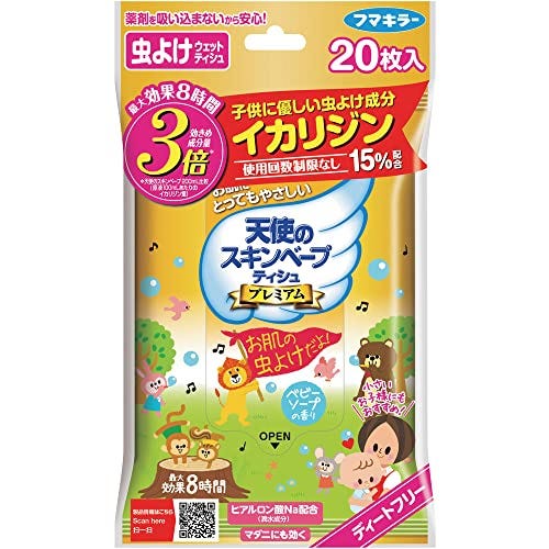 フマキラー 天使のスキンベープ 虫除け シート プレミアム 20枚入 ベビーソープの香り トコジラミ適用