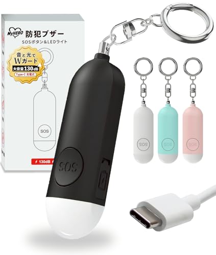 防犯ブザー 【電池切れ心配なし。いつでもスタンバイ】未使用充電1年持続 充電残量アラーム Type-C充電 130db LEDライト 防水 小学生 大人 男の子 女の子 ランドセル 防犯グッズ