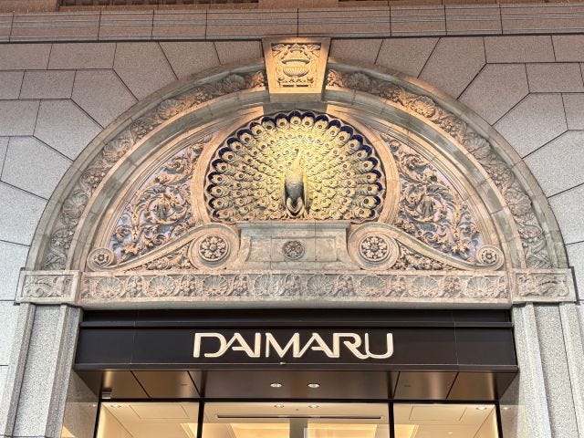 心斎橋筋側中央玄関のくじゃくレリーフ