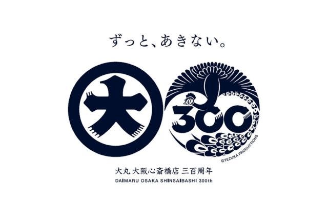 300周年記念ロゴには、大丸の旧ロゴマークと、手塚治虫 氏の「火の鳥」をモチーフに、過去と未来を象徴するマークを配置。