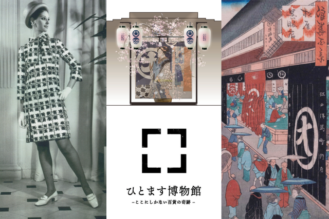 本館1階御堂筋側イベントスペースには、「座売りの頃の店先」をイメージしたブースが登場。のれんや帳面、看板など歴史的な史料が展示されます。3階は「大丸オートクチュールの歴史」を振り返る展示が。7階は明治から昭和期にかけての広告販促物を特集。ほかにも、浮世絵と桜の生花を使用した装飾やフォトスポットがあり、入場は無料なので、誰でも気軽に楽しめそう。