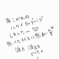 この度、ハワイと言う私達にとって特別な場所で、彼と二度目の結婚式を挙げました。ハワイ挙式は思っていた以上に感動的で、大好きな青い空と青い海に見守られながらの誓いは、彼との今までの大切な思い出や、彼に対する大事な気持ちをたくさん思い出させてくれました。