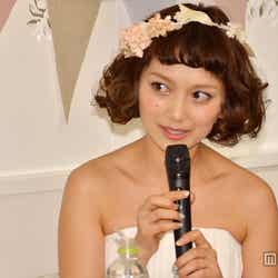 同イベントでは、トークショーやウェディング小物製作のワークショップも実施。トークショーでは、勘違いから挙式の費用を二重振込してしまったというお茶目なエピソードを披露。「海外挙式って思ったよりもリーズナブルでした」と説明し、笑いを誘い、招待されたファンとの交流を図った。(モデルプレス)