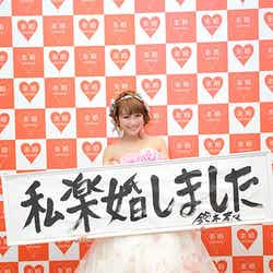 鈴木は2009年から4年5ヶ月間交際した茨城県在住の一般男性と2013年7月9日婚約。同年9月末から念願の同棲生活をスタートし、2014年1月に入籍。披露宴後のコメントでは、「ますます愛が止まらない」と満面の笑みで答え、新婚旅行についても尋ねると「ロケで何度か訪れた事のある京都に二泊三日ぐらいで行きたい」と渋い選択をしていた。(modelpress編集部)