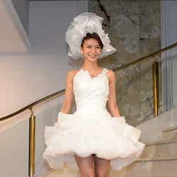 この日の会見では、デザイナー桂由美氏がプロデュースしたフリルのミニスカート型ウェディングドレスで登場。お相手は高校の同級生“てっちゃん”で、地元・浜松の工場に勤務している「ライオンみたいな人」。17歳から交際をスタートさせ、10年目の節目でゴールインとなったが「10年経ったら結婚しようって思ってたわけじゃないんですけど、気が付いたらちょうどいい節目だった」と説明し、「10年恋愛婚」と命名。