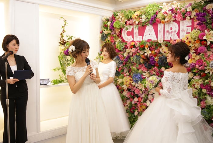 9月23日行われたお披露目会は、田中里奈さんご本人も『R couture』のラインアップの中からエンパイアドレスをチョイスして登場!