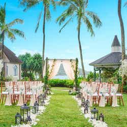 昨年12月に一般男性と入籍し、妊娠を発表していたアンジェリカ。ロケーションにこだわって選んだというハワイの「ザ・プライベート・ガーデン アロハ・ケ・アクア カハルウ・グローブ」にて式を挙げた。ワイキキの喧騒から離れ、深遠な静けさと雄大な自然の中に包まれたカネオヘエリアにあり、永遠の愛のシンボル「ハート」にまつわる物語が伝わる神聖な地。美しい景色が広がる開放的なガーデンで、純白のドレスに身を包んだ。